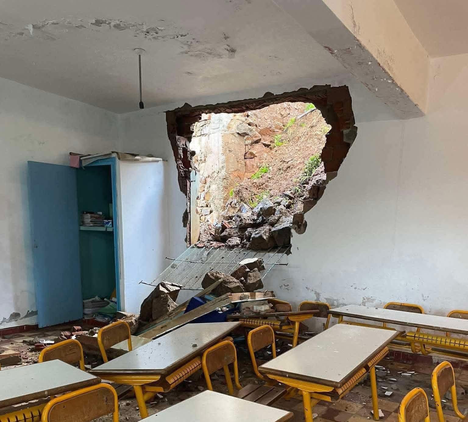 شهد إقليم شفشاون، عصر اليوم، حادثًا مقلقًا تمثل في انهيار جزء من حائط أحد الأقسام الدراسية بمدرسة دوار تفركيوان، التابعة لجماعة بني رزين، وذلك في ظل الظروف المناخية الاستثنائية التي تعرفها المنطقة خلال الأيام الأخيرة.