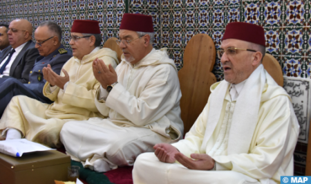 كما رفع الحاضرون أكف الضراعة إلى الباري عز وجل بأن يتغمد بواسع رحمته جلالة المغفور لهما محمد الخامس والحسن الثاني وأن يسكنهما فسيح جنانه.